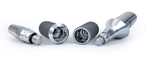 Son elementos fabricados de titanio puro que actúan como raíz dental, dando soporte a las prótesis o coronas, brindando el aspecto natural del diente.